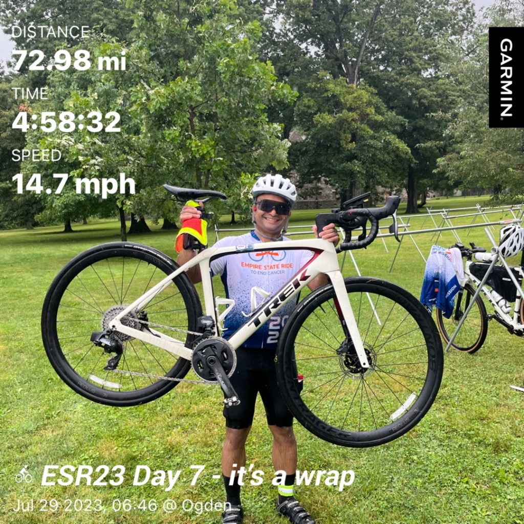 It’s a wrap! We rode more than 70 miles in torrential downpour. Final three miles were amazing as we rode together: patients and survivors, followed by premier donors and the rest of us. More than 300 of us rolled in with support of police escort.