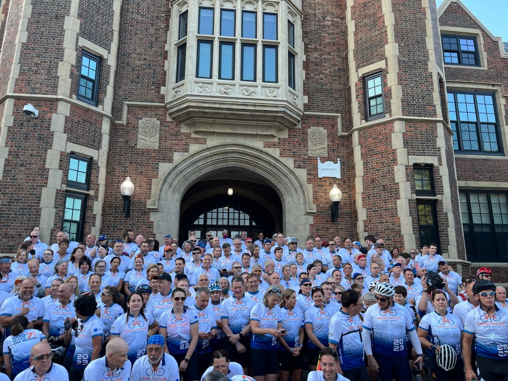 So the day, July 23, is finally here. More than 200 bicyclists set out on a 550+ mile ride as we raise funds for cancer research. Sharing a few pictures here: